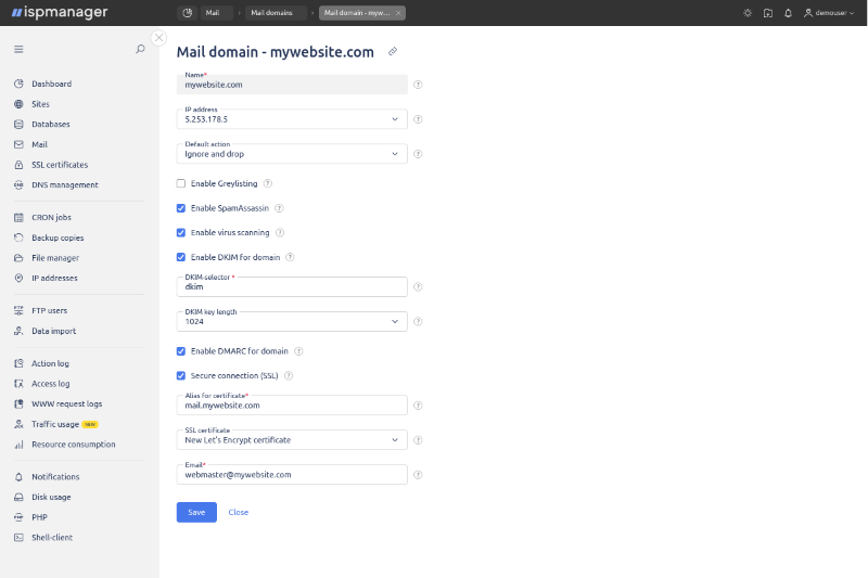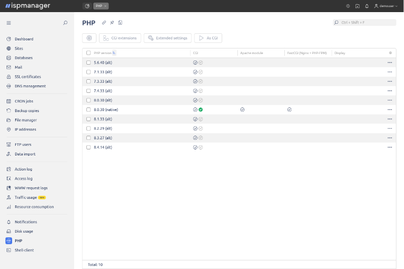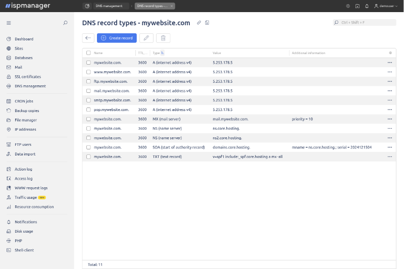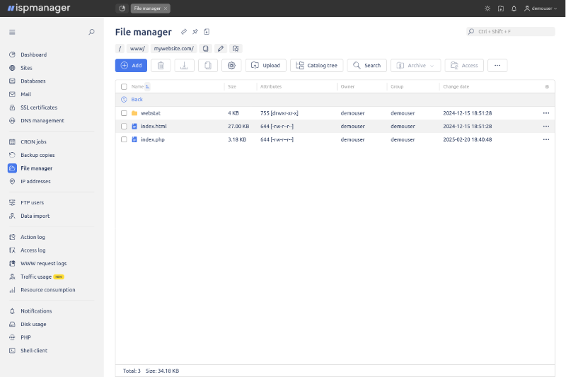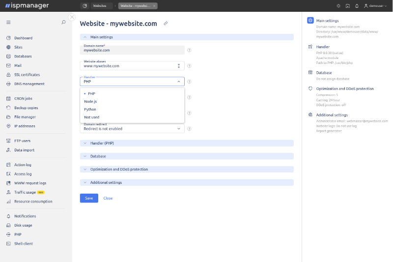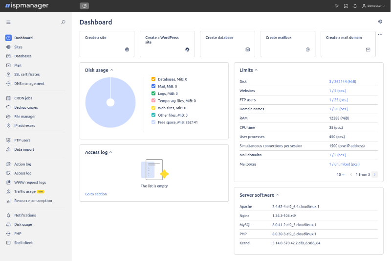 ISPManager on juhtpaneel intuitiivse liidesega veebilehtede majutamiseks, e-posti, andmebaaside ja varukoopiate haldamiseks.